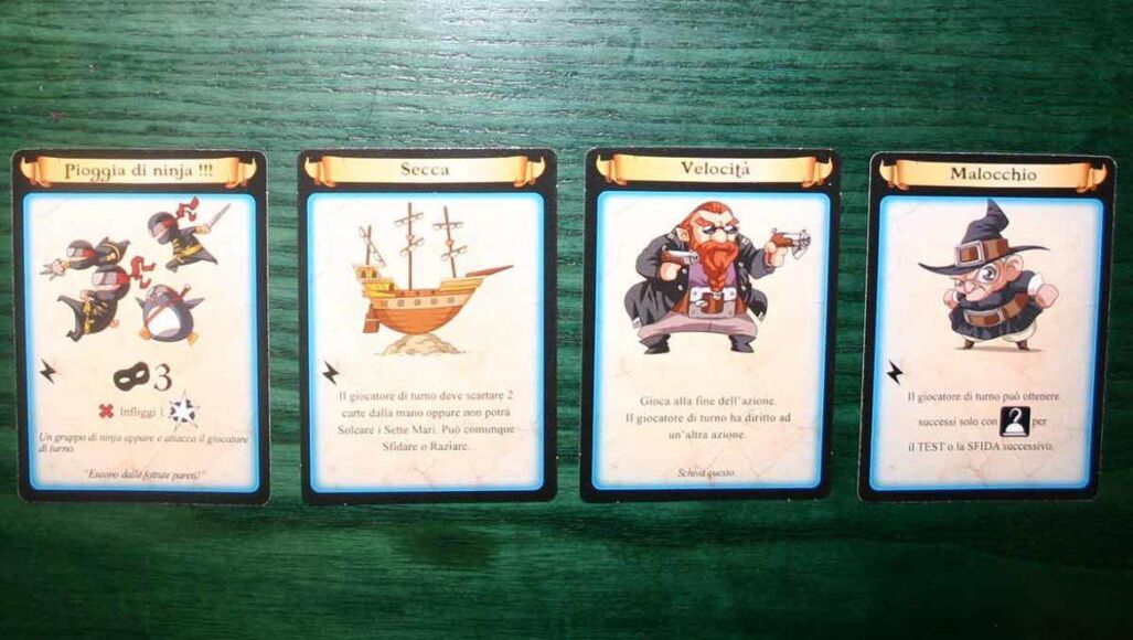 1. si pesca una carta Capitano (ognuna delle quali ha caratteristiche diverse e fornisce abilitร  peculiari sfruttabili durante i turni di gioco)
