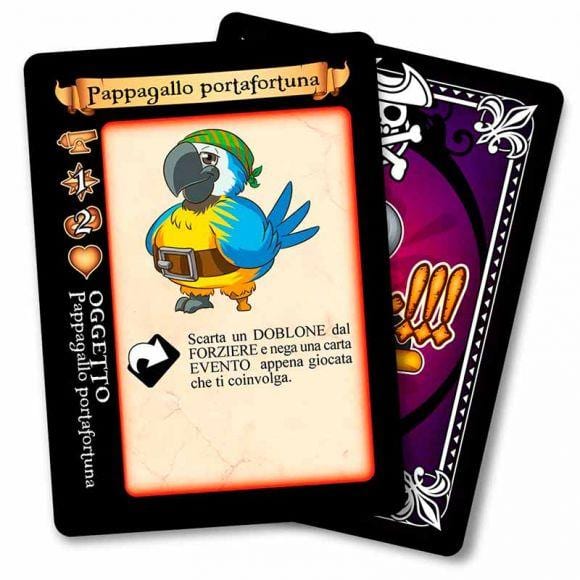 • Fase Equipaggiamento, in cui ogni giocatore schiera di fronte a sรฉ il proprio equipaggio che puรฒ essere composto da un massimo di 4 delle 6 carte equipaggio disponibili in ogni mano. Le carte equipaggio hanno 4 valori fondamentali da tenere dโ€™occhio: attacco, navigazione, astuzia e coraggio che risulteranno decisivi in caso di scontri e arrembaggi.