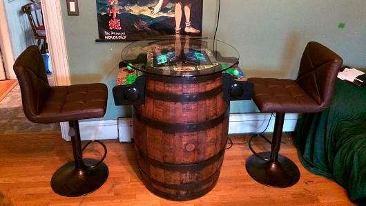 Trevor ha preso spunto dall’idea di un utente di un forum chiamato Arcade Controllers, il quale aveva costruito un cabinato-botte per ospitare il gioco di Donkey Kong (che ricordiamo consisteva nello schivare delle botti lanciate da Kong).