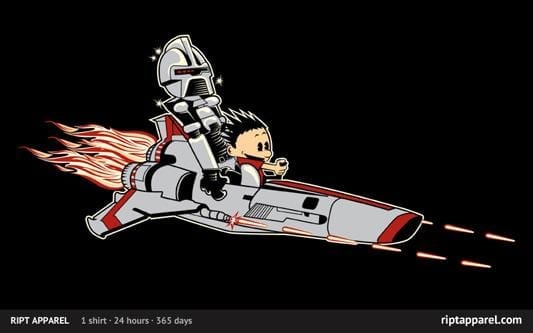 Brian Kesingerย ,famoso illustratore Americano di scuola Disney, ci ha regalato una serie di fantastiche illustrazioni in cui immagina un mash-up traย il famoso fumetto di Watterson e la saga diย Star Wars. Le immagini ripropongono i 2 personaggi animati in alcune delle scene piรน famose dell’ultimo film e alcune immaginate dall’artista.