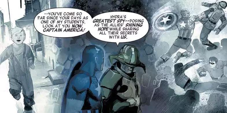 Quello che però si nasconde dietro questa improvvisa obbedienza all’Hydra è qualcosa che nessuno avrebbe mai potuto immaginare: una storia che si avvita su sé stessa in un doppio salto mortale, un triplo gioco che rivela come Captain America sia stato reclutato dall’Hydra nel 1920 e usato fin da bambino come un agente dormiente, spacciato per un grande supereroe ma in realtà in attesa di compiere la sua vera missione!
