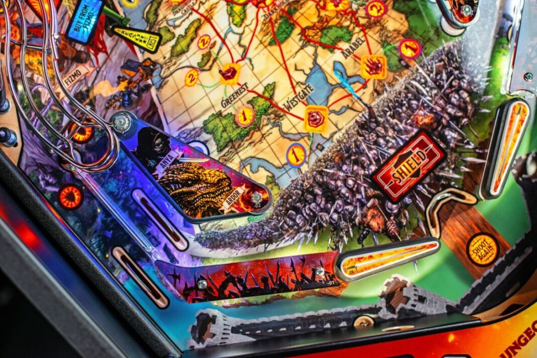 A dominare il tutto c’è Rath, un enorme drago rosso animatronico. Stern lo descrive come il mech più avanzato mai inserito in un flipper, e non sembra un’esagerazione. Rath si muove su più assi, reagisce alle azioni del giocatore e si comporta come un vero boss di fine livello, non come una semplice decorazione. È una presenza ingombrante, e proprio per questo funziona.